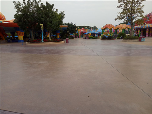 這次做的很滿意,小區里太多人來圍觀了,最滿意的是技術員了,材料顏色非常滿意,壓的很平整,掌握的干濕度正好,效果挺好的,技術員責任心很強!混凝土一直濕,這效果真的不錯哦,沖洗干凈后挺好的。